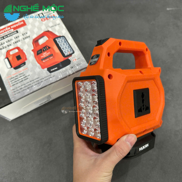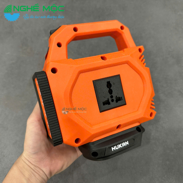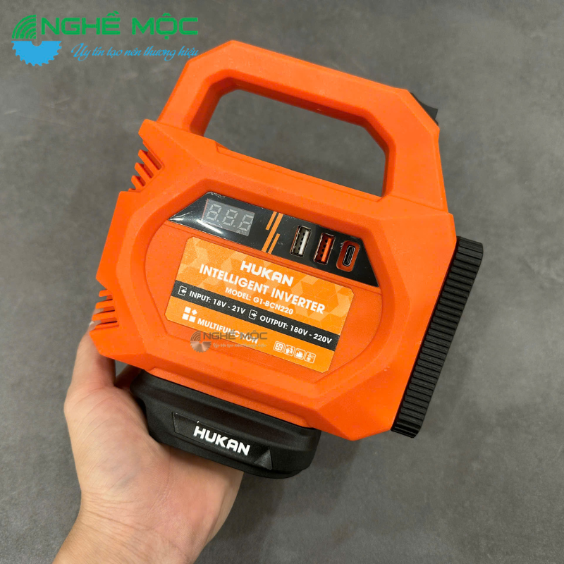 Bộ chuyển nguồn HUKAN G1-BCN220 là thiết bị inverter thông minh chuyên dùng để chuyển đổi nguồn pin 18V–21V sang điện áp 180V–220V, đáp ứng nhu cầu sử dụng điện linh hoạt tại công trình, xưởng sản xuất, gia đình hoặc khi di chuyển ngoài trời. Sản phẩm được thiết kế nhỏ gọn, chắc chắn, tích hợp đèn LED chiếu sáng và hệ thống hiển thị điện áp tiện lợi.