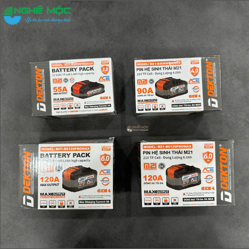 Dòng pin Dekton M21 là hệ sinh thái pin Li-ion 21V phổ thông, nổi bật với pin công nghệ chất lượng tế bào cao (EVE/Lishen), khả năng xả dòng cao ( 55A - 120A ). Với thiết kế chất liệu vỏ chống cháy/sốc và hỗ trợ sạc nhanh (thời gian chỉ từ 38-60 phút). Phù hợp cho nhiều nhu cầu từ gia đình đến công nghiệp.